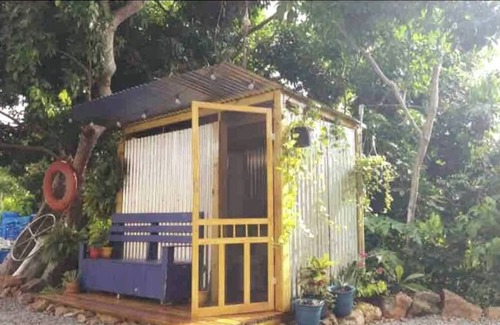 Our Tiny Room! Queen Loft Bed, Kitchenette, Private outside Bathroom. A/C, Fan, TV, Roku, Coffee Maker, Microwave, Wi-Fi, Towels, Beach Gear, Honor Bar, BBQ Grill, Pool. Free Parking. Centrally located in quiet neighborhood in the East End, 1/2 mile from Red Hook. WALK to Restaurants and Bars in Red Hook, St John Ferry, grocery, fishing and more. This room is approximately 150 sq ft.