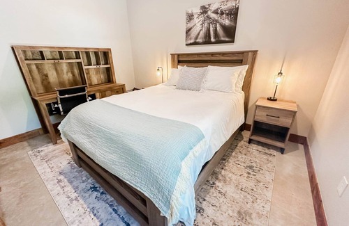 - One Queen bedroom w/work desk
