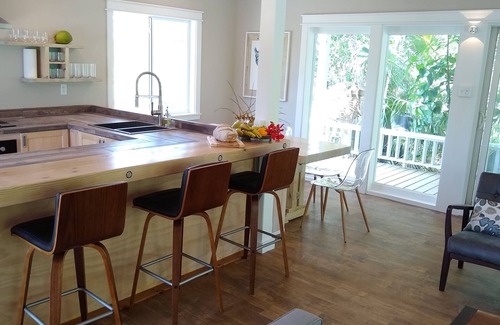 2 inflatable kayaks (210lb capacity) an SUP, and 2 sets of snorkel gear are included with the rental. Paddle boards are available to hire. The owner will gladly help you with arranging excursions such as day sailing charters, swimming with pigs, surf lessons, eco tours, as well as all manner of local knowledge.