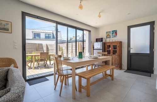 Cocoonr∕Booka&pay agency offers this 50 m² house for rent in Locmiquélic, which can accommodate up to 4 guests. Located in a typical neighborhood of small fishermen's houses, with no neighbors opposite, it consists of a 28 m² living room, a fully equipped kitchen, two bedrooms, a bathroom with shower, you can enjoy a very bright south-west facing outdoor area of approximately 40 m², including a 20 m² terrace on the same level. Wi-Fi (fiber optic) included, we are waiting for you!