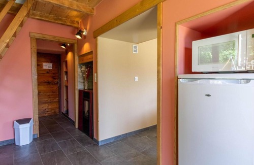 Apartment in a house comprising the owner's house and a second gîte. Separate entrance via about 20 steps below the parking lot. Ground floor: living room/kitchen opening onto a terrace, 1 bedroom with a second-daylight window overlooking the entrance (1 double bed 160x200 cm), bathroom (shower), separate toilet, 1 mezzanine bedroom accessible by a ladder or from the outside via a staircase. Pellet stove + underfloor heating. Situated on the heights of Saint-Michel-de-Maurienne, this south-facing cottage offers a large terrace with panoramic views of the peaks of Valloire and Valmeinier. It features a tree-lined garden and a calm, sunny setting. A warm atmosphere and tasteful decor characterize this comfortable accommodation, which can accommodate up to four people.