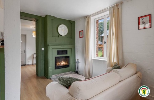 This 2-bedroom, 1-bathroom rental features a BBQ grill and a fireplace. The kitchen is equipped with an oven, a stovetop, and a refrigerator, as well as a microwave and a toaster. Other amenities include heating and a dining table.