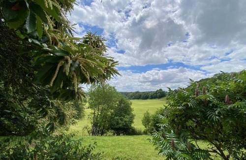 True haven of peace. Detached single storey gîte in the heart of a semi-wooded 3 hectare property with stunning views. Enclosed land 3000 m². Garage. Terrace. Veranda. Living room / lounge (insert fireplace, TV), kitchen (freezer, microwave). 2 ch. (1 double bed). 1 ch. (1 single bed). WC. Bathroom. Baby cot. Electric heating included within the limit of 400 kw / week. Cleaning option 38 euros. Fishing corner. Ping pong, bowling alley, 5 mountain bikes (3 children, 2 adults). 2 animals maximum accepted.