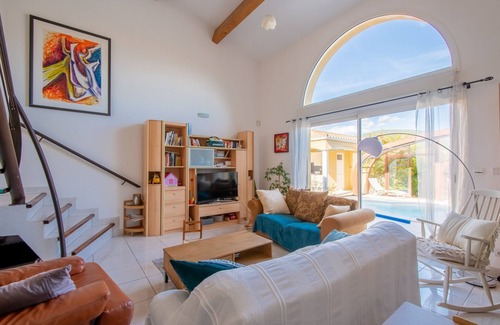 The Cocoonr/Book&Pay agency offers this charming 200 m² air-conditioned house with mountain views and swimming pool for rent in Montpeyroux, which can accommodate up to 10 travelers. It features a lovely living room (with fireplace), a fully-equipped kitchen, five bedrooms, two bathrooms and a 1,500 m² garden. Wifi, bed linen and towels extra - we're waiting for you!