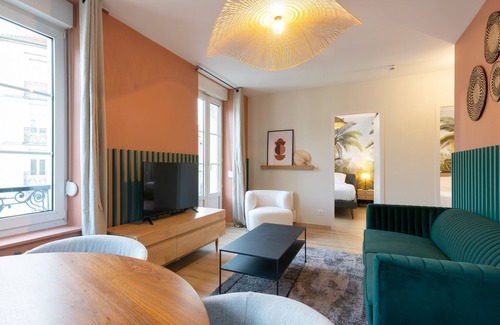 Cocoonr Agency offers you, in Nancy, this charming 55 m² apartment with wifi (fiber optics), which can accommodate up to 4 travelers. Located on the 1ᵉʳ floor (no elevator), it features a lovely 30 m² living room, equipped kitchen, two nice bedrooms, a bathroom (with shower and bathtub). Housekeeping is included in the rental and 4* hotel-quality linen is provided (sheets, towels, tea towels). Your bed will be made up on arrival.