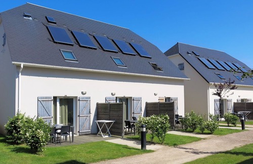 Resort "Le Domaine de la Corniche", 3 storeys, built in 2012. 110 apartments in the residence. On the outskirts, 650 m from the centre of Auberville, 3.6 km from the centre of Villers-sur-Mer, 1 km from the sea. For shared use: property 20'000 m2 (fenced), meadow, indoor pool (seasonal availability: 20.Jun. - 01.Oct.). Hot tub, boccia. In the complex: WiFi (all included), lift, washing machine, tumble dryer (for shared use, extra). Bread roll service and breakfast possible (extra). Parking (limited number of spaces). Shop 3.6 km, sandy beach "Villers-sur-Mer" 3.6 km. Please note: car-free holiday complex. The photograph shows a typical example. The holiday properties may differ in living space, floorplan, equipment and furnishing.
