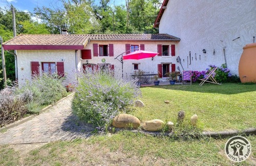 About 20 km south of Lyon near main roads, gite on same property as a 2nd one & owner's house. Ground floor : living room with bread oven (operating on request), kitchen, telesejour phone, electric heating, double room, WC. Upstairs : bedroom (2 single beds), small lounge area on mezzanine, shower room. Closed off storage area. Terrace, lawn, garden furniture. Located 15 km from Eurexpo, 20 km from St Exupery airport. Weekly lets only (from Saturday to Saturday).