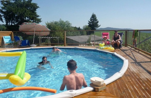 Beautiful traditional house, stone-built & totally detached, in small hamlet of the Monts du Beaujolais area. Near 'Col des Echarmeaux', Saône et Loire & Burgundy area. Countryside setting. Owners can rent a 2nd gite in hamlet (14 people in total). Ground floor: living room, kitchen, shower room, WC, bedroom (150x200cm bed + 120cm wide bed). 1st floor: lounge, balcony, terrace with garden furniture. Bedroom (160x200cm bed). Shower room, WC. Upper floor: attic bedroom (4 single beds). Heating: electric & wood, telephone (to get calls only). Grassy area, play area, deckchairs, barbecue, table tennis, football table, trampoline, shared above-ground swimming pool (6.40m in diameter, available from June) with safe wooden beach. Private parking. Use of owners' hot tub.