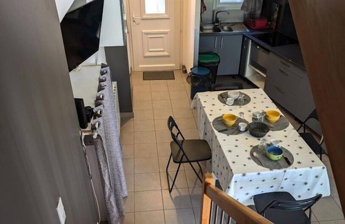 Self-catering accommodation South East of Lyon, ideally located in the Plain of Lyon, near St Exupery Airport, Eurexpo and the department of Isere. Perfect for business travellers or tourists exploring the city of Lyon. Easily accessed, main roads nearby. Large renovated house including both 2 other lodgings rented by the year (upstairs) & 1 adjoining gîte for 5 people (2 bedrooms). Gîte for 6 people, on 3 levels, light, comfortable & well equipped. Ground floor : small covered area before entering, living room (kitchen & dining areas, lounge area with single sofa bed & large screen TV). WC (washbasin). 1st floor : 1 bedroom (2 single beds), shower room including WC. 2nd floor : 2 bedrooms (2 single beds) (1 single bed). Bed linen & towels supplied at no extra charge. Cot & high chair on request. Outdoors : small terrace with barbecue at the back, large shared and enclosed courtyard (gate) with parking for 2-3 cars. The 2 gîtes can be booked jointly for family gathering (11 people).
