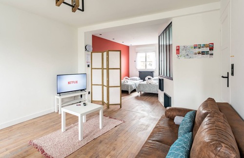 The flat is fully furnished to ensure a pleasant stay. Bed linen is provided (sheets, towels, bathrobes, slippers). The kitchen is fully equipped with a complimentary hot breakfast bar. Bathroom with shower. You will have access to high speed wifi to work on your business files or to explore the good places of the city. The flat is located in a very quiet residence on the ground floor. You will love the charm of the old wooden floors and the brightness of the large windows.