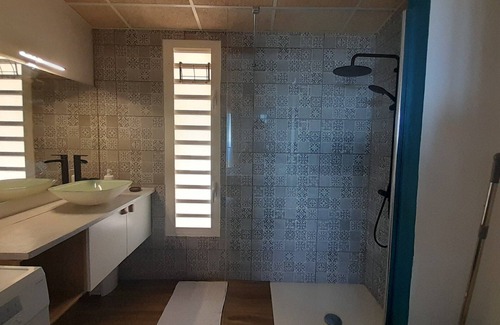 The apartment is bright and offers a warm and pleasant atmosphere. For your comfort, bed linens and towels are included, so you don't have to worry about anything upon arrival. It also offers free Wi-Fi, perfect for staying connected during your stay. Located in a quiet and green neighborhood, you can enjoy a peaceful and pleasant environment, with a lush outdoor space. Additionally, a washing machine is available, making it ideal for a couple with a child, to make your daily life easier.