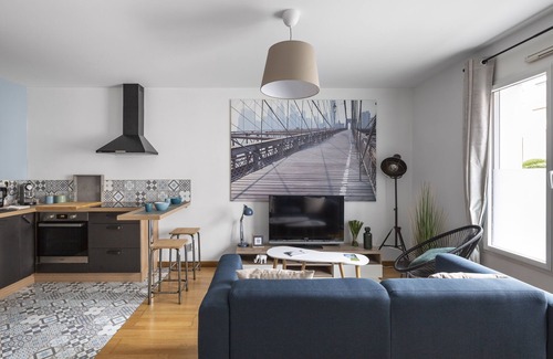 The flat is ideally located in Nantes, in a very pleasant environment. You'll be close to all the essential shops, as well as boutiques, restaurants, bars, the market...