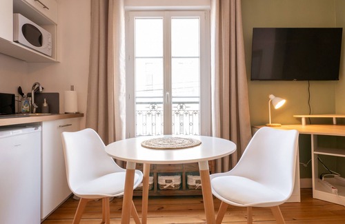 This charming, bright studio apartment has an entrance that leads to a living room with a study area, a TV (you need Molotov to watch TV) and free Wi-Fi access. There is also a dining area and a kitchenette equipped with microwave, coffee machine, kettle, etc. The sleeping area has a double bed, wardrobe and bathroom with shower, washbasin and WC.