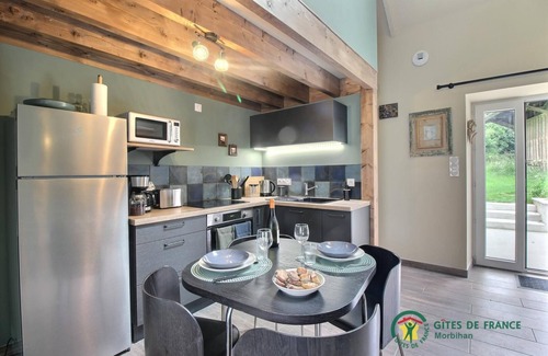 This charming vacation rental is located in a quiet area at the end of a cul-de-sac. Independent, it has been perfectly fitted out to offer you maximum comfort in its 32 m²! She offers you: - On the ground floor: a living room with kitchen, living room and lounge and a bathroom with toilet. - Upstairs and on the mezzanine: 1 sleeping area with 1 160 x 190 bed, concealed by an electric blind. Outside, you will enjoy a private terrace not overlooked and a private garden. The 160 beds can be converted into 80x190 beds. The cottage is located on the owner's estate with in common: a large hangar is used as parking. The outbuilding visible in the photos (behind the gîte) is not occupied. At the northern end of Morbihan, discover a preserved territory rich in discoveries. Just 1 km from the gîte, explore the towpath of the Nantes-Brest Canal on foot or by bike. A 15-minute drive away, Lake Guerlédan, the largest in Brittany, awaits you with its equipped beaches, its hiking trails, its cruises and its activities: water skiing, canoes, pedal boats, paddle... History lovers and heritage will appreciate, in summer, the 'Art in the Chapels' event and will be able to stop off in Pontivy to discover its medieval castle and its old town. To liven up your evenings, Brittany hosts numerous festivals throughout the summer!