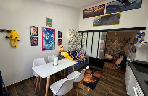 Welcome to the Poké'appart!Whether you are a solo traveler, with your significant other, your buddy, your colleague, or with family, come stay at the poké'appart.More than just housing, a poké adventure.Lunch under the flight of the three legendary birds or under the benevolence of Lugia. Admire the Mountain of Evolutions or work with the help of Clefairy and her friends. And why not a break on Snorlax.Do you remember passages from the series or the Game Boy game?Settle into your bed and relive the 90s with a VCR to experience Ash's adventure or take control with the N64 on Pokemon Stadium.Bring your Pokémon blue/yellow/red cartridges and play thanks to the transfer pack controllers.Before leaving, also choose the podium of the best cards.Feel free to escape, the hardest part will be not forgetting the reason for your coming to Le Mans. High-end services signed Dream in Le MansEnjoy a tailor-made stay with our team available 24/7:- Breakfast delivery- Private chef booking or cateringPrivate driver- Floral Services- Grocery delivery, wines or appetizer platters- Jacuzzi rental, baby equipment, scooters, etc. House Rules Prohibited Parties (Subject to Deposit Withholding) Strictly non-smoking accommodation Presence of noise, smoke, and motion sensors Deposit by bank pre-authorization or mandatory insurance