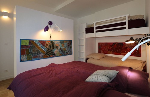 Appartement de 72m2 situé au rez-de-chaussée d'une maison de village traditionnelle proposant une autre location. Accès indépendant. Balcon-terrasse avec table et chaises. Entrée ouverte sur la cuisine intégrée entièrement équipée. 3 chambres (1 chambre 1 lit 2 personnes / 1 chambre 4 lits 1 personne dont 2 lits jumelés et 2 lits superposés/ 1 chambre 1 lit 2 personne avec salle d'eau attenante). Salle de bains (baignoire luminothérapie et hydromassage) avec WC. Salon-séjour exposé Sud avec accès balcon-terrasse. Lave-linge et sèche-linge partagés avec la seconde location accessible au sous-sol. Stationnement public à proximité.