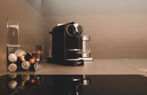 The spacious living room is also equipped with a TV and opens onto a fully equipped kitchen with oven, dishwasher and Nespresso coffee machine.