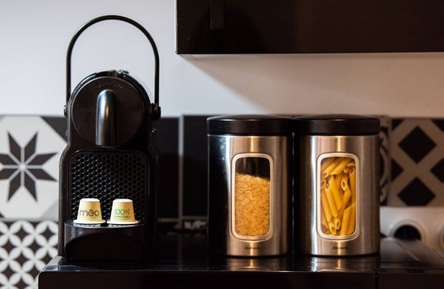 We provide you with convenience products (rice, pasta) and you have access to a fully equipped kitchen (electric stove, Nespresso, microwave...).