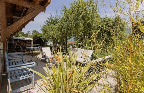 Detached house on 2 levels. Ground floor: an entrance separated by a glass roof, kitchen-living room-lounge with wood stove (wood included), Wifi connection. Upstairs: large mezzanine / relaxation area (sofa bed 120 x 190 cm for 1 person), 4 bedrooms with TV each (1 double bed 140 x 190 cm / 1 double bed 160 x 200 cm with balcony-terrace / 2 single beds 80 x 190 cm / 1 bedroom with a bath-island and private WC, 1 double bed 160 x 200 cm). Bathroom with corner bath + walk-in shower, separate WC. Living room opening onto a sunny terrace with garden furniture Pleasant orchard of 2000 m² on the property. Private parking on site. Old barn of the 18th century renovated with taste at the entrance of a quiet hamlet in the heart of a green environment. Privileged location for this very comfortable gite. Unobstructed view of the countryside and the Lépine massif. Supervised bathing at Saint Jean de Chevelu at 11km. On the way to Compostela.