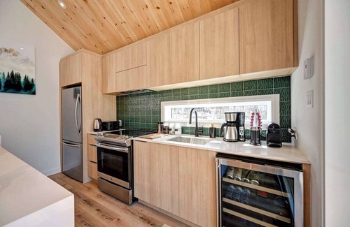🌿 This modern stilted retreat, inspired by the charm of Lake Windermere in England, is perfect for creating unforgettable memories. Enjoy breathtaking views from the terrace, relax in the spa or sauna, rinse off in the outdoor shower (3 seasons), and unwind by the wood-burning fireplace. High-end bedding and a peaceful atmosphere ensure a relaxing and rejuvenating stay.