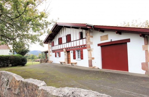 Gite in a character house on the heights of Sare, including the owner's apartment at the back. Ground floor: fitted kitchen (microwave, fridge-freezer). Large living room with lounge (insert fireplace, Téléséjour telephone). Laundry room. 1 bedroom (2 double beds). Bathroom. WC. Upstairs: 2 bedrooms (2 double beds), 2 bedrooms (2 double beds, 1 cot). Bathroom. WC. Electric heating in supplement. Unfenced land. Terrace. Garden Lounge. Barbecue. Beautiful gîte located in a beautiful Labourdine house, very close to the Spanish border, with a privileged view of the mountains (Rhune).