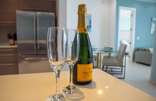 The Blue Residence has created an oasis within St Maarten/ St. Martin. A combination of the best modern architecture with the openness of the Caribbean life style, with panoramic views of the turquoise Caribbean Sea, which can be enjoyed from all angles of the building., US Style Kitchen that is FULLY stocked with everything you will need,