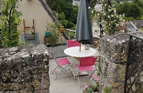 Cozy apartment in a house dating from the 16th century, you will appreciate its charm and authenticity guaranteed by a quality restoration. In the heart of the Chateaux de la Loire, in the historic district of Amboise, this duplex will give you an ideal geographical location between the Place du Château and Clos Lucé. Its quick access to downtown Amboise will allow you to enjoy its many restaurants, shops and craft markets. You will also enjoy a terrace with panoramic views of the Loire Valley and the cave houses of the region. Also enjoy a view of the Castle and the Clos Lucé from your bedroom window. The sun will flood the apartment from morning till night.
