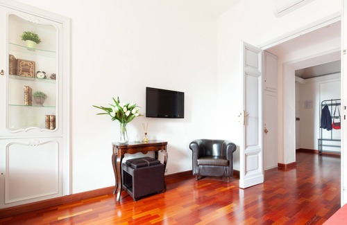 Between the Tiber island and piazza navona, on the 4th floor of a period building, leonardo suite navona is an elegant and welcoming 120m2 apartment, completely renovated, very bright, consisting of three bedrooms and two bathrooms. It accommodates up to eight people, 10 minutes from Piazza Navona, 5 minutes from the Pantheon and Piazza Venezia and ten minutes from Trastevere, all of which can be visited by walking. Free Wifi