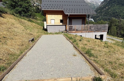 Le Chalet Centaurée typiquement montagnard peut accueillir 12 personnes. Entouré d'un grand jardin et d'une terrasse équipé avec barbecue et salon de jardin, vous pourrez profiter de la vue sur les montagnes qui l'entoure. Le Chalet Centaurée est situé à 5 minutes en vélo du centre de Bourg d'Oisans sur des routes paisibles.. Son garage fermé assure la sécurité de vos velos, skis ou tout autre matériel. Le Chalet Centaurée, equipé d'Internet, dispose d'une grande cuisine très bien équipée, de 5 chambres dont une dans des combles aménagées et 2 salles de bain avec WC.