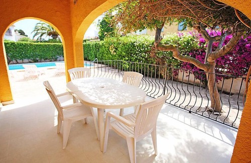 Cosy villa "Les Canyes". In the district of Playa Almadrava, 3 km from the centre of Els Poblets, 200 m from the sea. Private: property (fenced) with wildlife garden, swimming pool (4 x 8 m, depth 120 - 180 cm, seasonal availability: 01.Jan. - 31.Dec.) with internal staircase. Outdoor shower, terrace, barbecue. Supermarket 1 km, restaurant 500 m, bus stop 200 m, shingle beach 200 m. Sports harbour 10 km, golf course (18 hole) 9 km, riding stable 3 km. Groups of teenagers on request only.