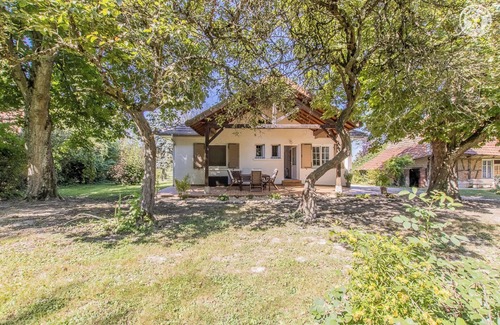 Concerned about animal happiness, owner of the nearby "Ferme des 3 Allures" (breeding of "Shetland ponies", boarding & refuge for old horses, donkeys etc ... / visit and various services to discover on the site such as: "in hand" walks for children, hikes accompanied by the owners ...) but also beekeeper, Anne-Elodie welcomes you in a charming pavilion of "seventies" architecture carefully restored & redesigned, nestled on the immediate edge of fields & meadows (including a mini pasture welcoming some of their horses & ponies which borders the garden, for the happiness of children), in the hollow of a pleasant preserved rural setting. Peace & tranquility, nestled in the heart of a peaceful rural hamlet adjoining the center of a small typical village (with a beautiful communal swimming pool). Very comfortable cottage. Warm country character with contemporary accents of Nordic inspiration. Lots of charm. Zen & gentle atmosphere. Literally soothing and relaxing. A spacious, sheltered 35m² terrace on the garden side is complemented by a second, large, panoramic terrace to the west (open to the meadows), offering sublime sunsets and a beautiful, unobstructed view of the surrounding countryside. You have access to a vast, carefully landscaped, grassed, and wooded 1-hectare park (including a fruit orchard: apple trees, plum trees, etc.), a literal natural playground, including a bucolic little private pond nestled at the end of the garden (with frogs, fish, etc.) with a shaded picnic table under the trees. Composition: Detached house (including a vacant outbuilding). Wi-Fi. Electric heating and a wood-burning stove. Single-story cottage: kitchen, living room (double sofa bed 140x190cm), 2 bedrooms, 1 with TV (double bed 160x200cm / 2 single beds 100x200cm), bathroom (shower), separate toilet. Covered terrace + terrace + garden (1 ha) + private parking. Shops & services 6 km away. Train station 21 km away.