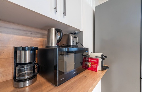 - A fully-equipped kitchen with electric kettle, oven, microwave, toaster, hob, etc.