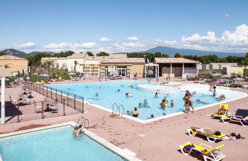 Resort "Les Demeures du Ventoux". 225 apartments in the residence. 2 km from the centre of Aubignan, 4 km from the centre of Carpentras, 31 km from the centre of Avignon. For shared use: property, swimming pool (500 m2, depth 45 - 200 cm, seasonal availability: 19.Apr. - 30.Sep.). Children's pool, table tennis, boccia. In the complex: reception, WiFi, fitness room (extra). Table tennis, washing machine (extra), tumble dryer (for shared use), bicycle rental. Parking (limited number of spaces). Shop 2 km, bus stop 900 m. Please note: entertainment in the season. The photograph shows a typical example. The holiday properties may differ in living space, floorplan, equipment and furnishing.