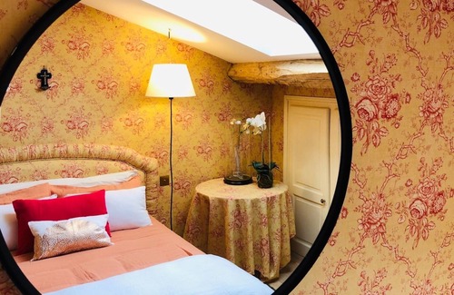 Located upstairs, the Secret Garden suite offers a bit of history since in the main bedroom we chose to keep the original wall tapestries which, with the exposed beams of the huge bathroom, give it all its heat. It can accommodate up to 4 people. The bed sheets are in delicately crinkled linen.