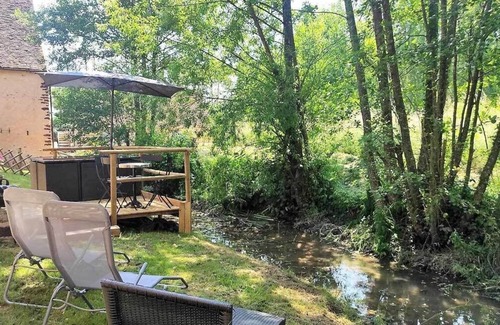 Maison des Plançons is a self-catering gîte on the banks of the little river, near an old 17th-century watermill that has been listed as a historic monument and converted into a large gîte. It has an unfenced garden.