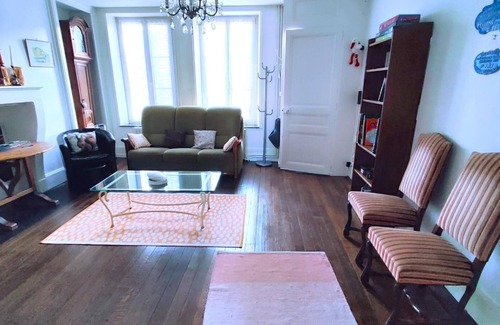 Semi-detached house on 6 ha land (swing, slide). Ground floor: fitted kitchen (microwave). Living room (TV). Garden level (shower room). 1st floor: 2 bedrooms. (1 double bed). WC. 2nd floor: 1 bedroom. (2 single beds). Bathroom with toilet. Baby cot. Linens provided. Gas central heating. Cleaning option 40 euros. Only 1 animal accepted (category 1 and 2 dogs refused). Viewpoint over the Meuse Valley and boat rental 2 km, Château Fort de Sedan 7 km, Charleville (museums, aquatic center ...) 15 km, Belgium 30 km.