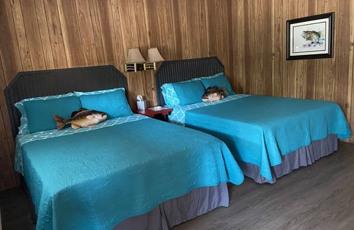 New Owner and newly updated room! New bedding, microwave, refrigerator and more. We are open for business and looking forward to making this a new and great experience. This room is equipped with 2 queen beds, a mini refrigerator, microwave and coffee maker. This room has DIRECTTV and free Wi-Fi. Plenty of parking for your truck and boat with long parking spaces. We have a fun outside seating area with a beverage machine. There is an on-site Manager on the property. Convenient to restaurants and coffee shop in downtown Quitman and minutes from Lake Fork. Close to Canton, Minneola and many other cute small towns to visit for antiquing, shopping and eating. Come and enjoy a new experience at the Reel Inn and Lodge.
