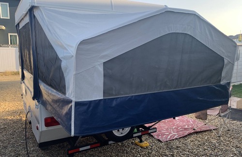 Let’s go camping. Easy pull behind tent trailer with any smaller SUV.