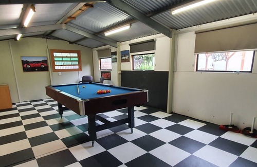 GAMES ROOM has a table tennis table & darts a few chairs & fan, radio. Just outside the Games room under the carport is an electric BBQ ready to cook a meal to be enjoyed under the pergola with a glass of wine.
