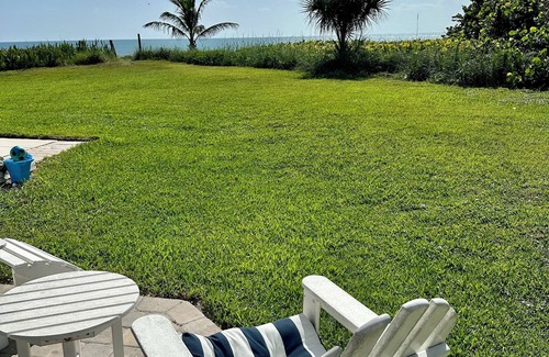 Gorgeous Oceanfront Townhome completely renovated and professionally designed. South end unit offers tons of privacy and NO Cameras!!! Coastal living magazine just rated us as top 10 vacation places!! Ocean views from Main living area and Master Suite with king size bed and balcony. Top of line furnishings in this beautifully appointed open floor plan townhome. Right out of Coastal Living magazine! Sleeps 6. Three bedroom 3 bath, 2 upstairs 1 down. TVs in every bedroom. Covered parking. Cable and High speed internet included. Walk/bike to dining and shopping. 1 hour to Orlando attractions, 30 minutes to Kennedy Space Center and NASA.