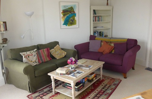 Close to the town, beach and coastal path, this flat is peaceful and full of light with different sea, hill and beach views to enjoy from each room. The furnishings are comfortably modern with colourful rugs. The flat consists of two 'wings' (with a kitchen you can eat in, a large sitting room, and bedroom) - this unusual orientation makes it very spacious and brings the sun in all the day and year round. Central heating makes it cosy in the winter. The position is perfect for those who want to set off along the SW coastal path or Purbeck Way, take the steam train to Corfe Castle, or spend the day on the beach then retreat to the peace and quiet of Barnacles before trying the many pubs and eating places in town. Between Swanage and Lulworth the coastal scenery is dramatic and craggy with beaches and old stone quarries. Swanage also has a variety of festivals including Purbeck Art Weeks Festival at the end of May, the popular Jazz Festival in July, the Purbeck International Chamber Music Festival in early September, and the famous Purbeck Film Festival in October.