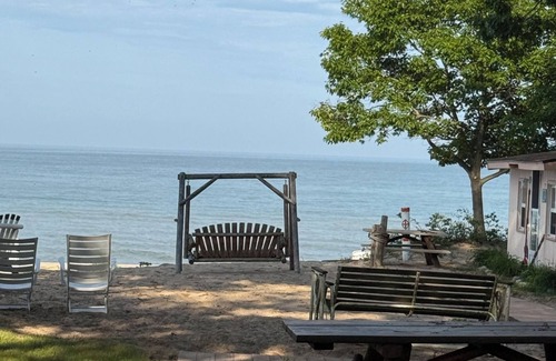 Discover the charm of Lighthouse Inn, nestled in Au Sable Charter Township. This delightful two-bedroom cabin offers a serene lakeside escape with a queen bed in both the cozy loft and downstairs bedroom, plus a full-sized futon in the living room. The kitchen and open living area are perfect for relaxing, all while soaking in the stunning lake views.