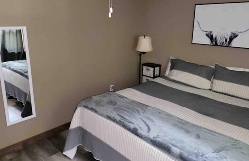 Welcome to our newly renovated cabin, featuring all the modern amenities you need for a comfortable stay. With a new A.C. and heat unit installed, you can relax in the king, queen, or double bed with freshly washed linens, pillows, and blankets. The pullout couche also offers additional sleeping space, with extra linens and pillows provided. There are two couches for pleanty of sitting room and sleeping accomadtions.