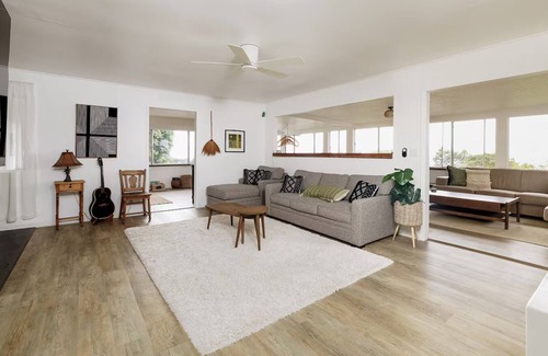 Spacious, stylish, newly renovated tropical boho home. Stunning ocean views! LOTS of space - 3 bedrooms, 2 sleeper couches and a futon.