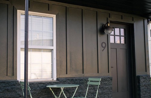 Guests have access to their reserved home, designated parking space right outside their door, and access to the shared common/outdoor area located to the right of the building where you can enjoy a fire pit, and lounge at the picnic tables. There is also coin laundry available on the property.