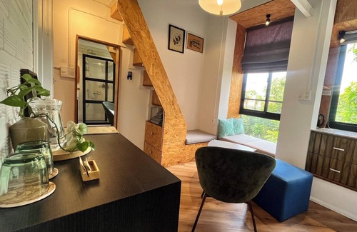 This apartment can accommodate up to two people. It is fully equipped with everything you need, the bedroom has a king size bed (1,60x2m). The bathroom area with bathtub. The dining area has mini kitchen, the living room and a smart TV, where you can find a big and comfortable sofa. There is also a nice balcony where you can seat and enjoy the urban life.
