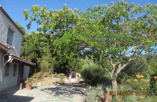 villa in a very quiet hamlet, in the heart of the corbières massif. for 6 people including 2 bedrooms (double beds) + 1 bedroom with 2 single beds (sheets are not provided). 2 bathrooms - dining / living room; with TV and DVD player, insert (free wood) -equipped kitchen- washing machine. Terrace with mountain view. Tranquility assured. Enclosed grounds (2000m2). 650 euros during school holidays