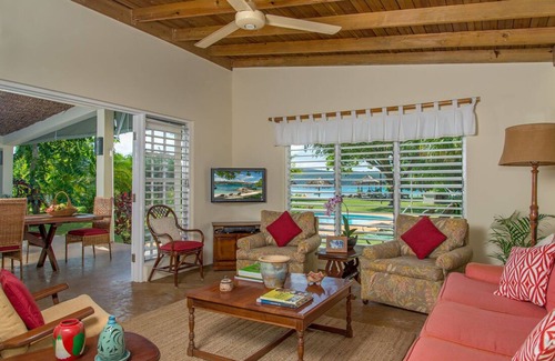 Welcome to Linga-Awile on the Beach, a lovely small and private 3 bedroom beachfront villa located on Discovery Bay’s clear waters. Linga-Awile shares a delightful waterfront site with its sister property, Villa Coral Cove. Without a doubt, you will feel the peaceful ambience of the Caribbean as soon as you enter Linga-Awile. This pretty Jamaican villa is elegantly perched on a lovely, long, large lawn with its own swimming pool and sugary white sand beach with thatched roof umbrellas for shade.