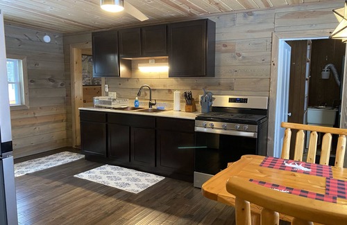 What a view! Nestled high on the ridge overlooking the bay and Lake Superior, this completely remodeled house has real hickory hardwood floors throughout. It has a new cabin feel, all shiplap & tongue and groove walls and ceiling. All new high-end, stainless-steel appliances (refrigerator, stove and washer/dryer), quartz counter tops, hammered cooper kitchen sink, and leather furniture, including a pull-out sofa (queen). We offer a selection of K cups for the Keurig or if you enjoy drip coffee we do have a regular coffee maker as well. There are three smart TVs, total with amazon/netflix available. One TV in the King bedroom, one in the main living room and one in the kids living area (that has the pull-out sofa). For as beautiful as this house is inside, the outdoor space is more amazing, new wrap around deck will be available Summer 2025. The kitchen, living room and queen bedroom has an amazing view of Lake Superior. Sit on the porch swing and sip coffee or wine all day looking at the beautiful blue hues of the water. Play corn-hole (game provided to use) in the side yard or bring your own outdoor games for the whole family. The heated garage has an additional refrigerator and outdoor grill all for guest use. Toward the back of the house enjoy fire in the firepit- we supply all the firewood you need. There are 3 heat sources for this house. One is 100% off-grid meaning it will work if the case of a power outage.