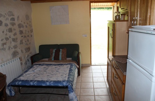 The apartment is composed of a kitchen / living room (with sofa bed for a small brotherhood of two 110x180), a bathroom (shower no bathtub) and a bedroom with a double bed 140x190 mattress (sheets & towels not provided). And as we are in the countryside a large open space to stretch the legs of the youngest directly at the exit of the apartment, one, two, three go !!